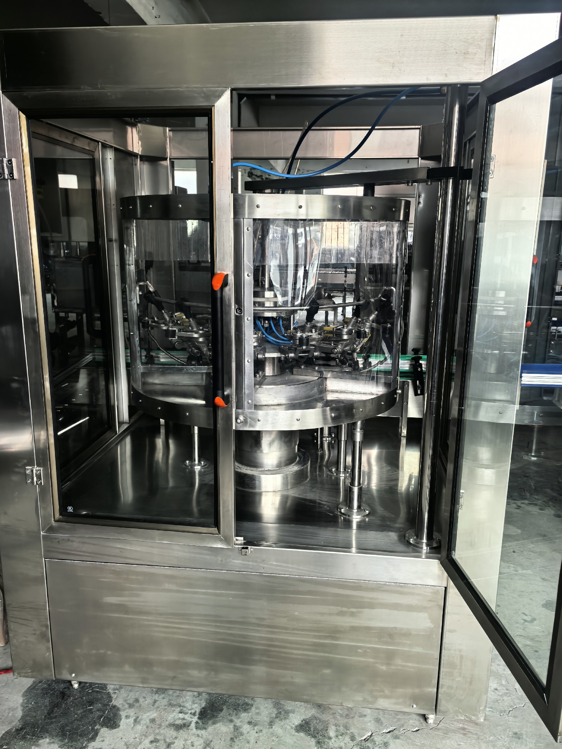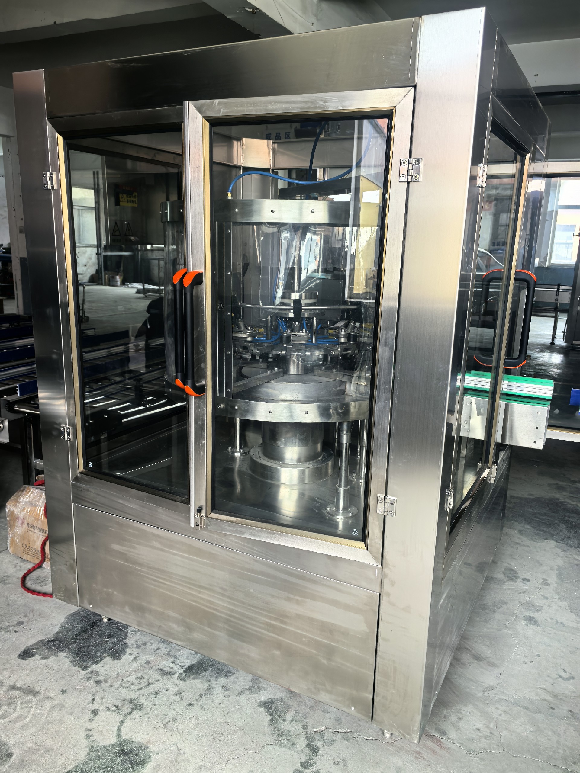 全自動(dòng)旋轉式空氣洗瓶機是一種適用于食用油玻璃瓶等生產(chǎn)線(xiàn)的自動(dòng)空氣沖洗瓶設備。該機設計合理,結構嚴謹,封閉式生產(chǎn)確保生產(chǎn)過(guò)程中不受污染。與其它同類(lèi)產(chǎn)品相比,優(yōu)點(diǎn)在于:沖瓶速度快,該機沖瓶速度達到1500-3000瓶/h;變頻調速,可根據生產(chǎn)需要任意調整;分氣閥嚴格控制沖瓶與控瓶時(shí)間保證瓶子沖洗干凈;先進(jìn)的夾爪加工精密,工作可靠,使用壽命長(cháng)。