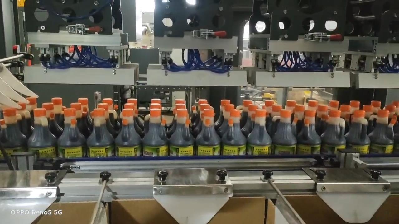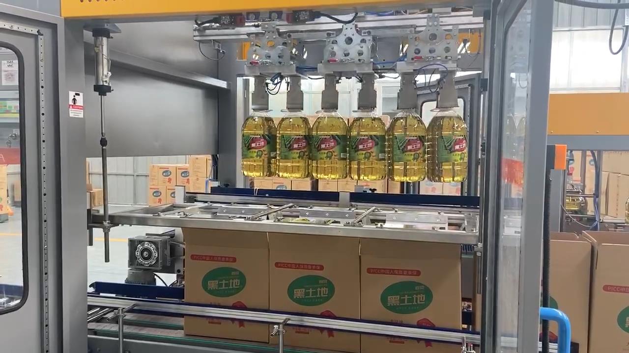 本設備為抓取式裝箱機,適用于各類(lèi)PET、PVC材質(zhì)瓶型,裝箱速度為2000瓶小時(shí)(5L),由三菱可編程控制器自動(dòng)控制進(jìn)瓶,裝箱等過(guò)程,并采用進(jìn)口電器元件和氣動(dòng)元件,保證系統運行穩